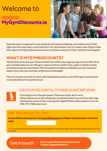 Brighten up your break room with eye-catching posters to encourage your staff to sign up to MyGymDiscounts.